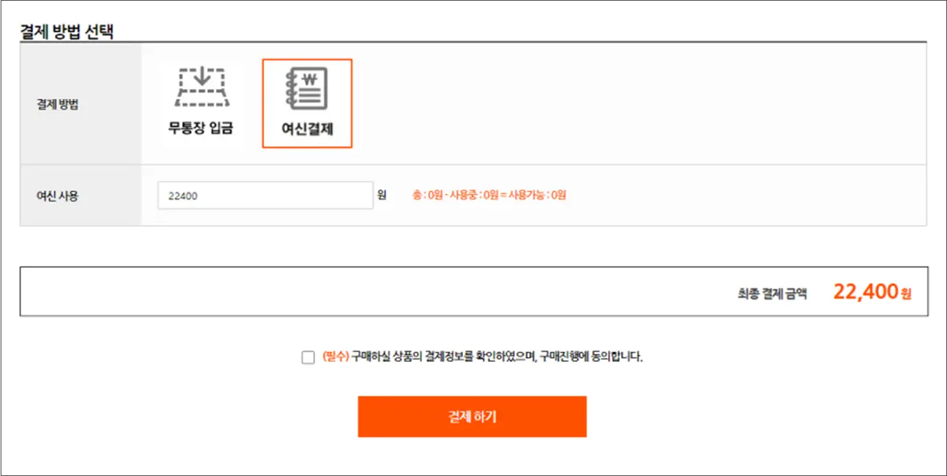 무통장입금 뿐만이 아닌 여신결제가 가능합니다!