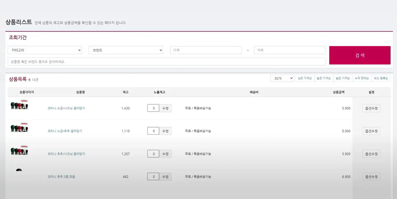 거래 단가, 상품재고 등 자동으로 설정한 옵션대로