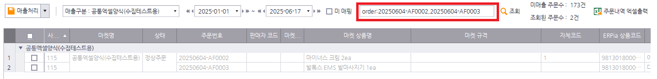 ORDER: 입력 후, 검색을 원하는 주문번호를 "," 기준으로 넣어 검색하시면 해당 주문번호만 검색됩니다.